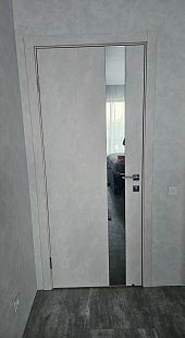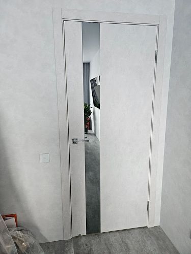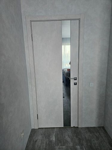 Дверь ПО EXZ 10E Бетон лайт зеркало графитовое из Экошпона COVERFLEX (Двери Нева) в Сертолово с установкой и доставкой