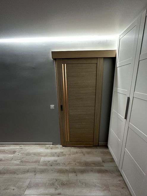 ПО QuLine 8-3 Беленый дуб стекло белое раздвижная с установкой "под ключ" в Сертолово